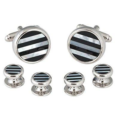 Striped Onyx Mother of Pearl Tuxedo Cufflinks Studs
