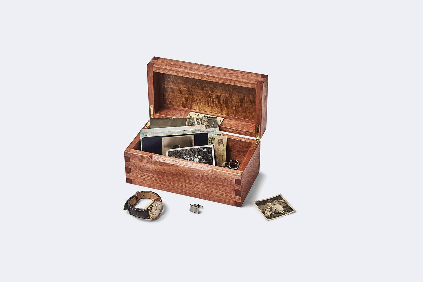This box is perfect for housing all your bits and pieces such as foreign currency, old photos, watches, your passport, etc... A perfect gift for the person who appreciates fine work.